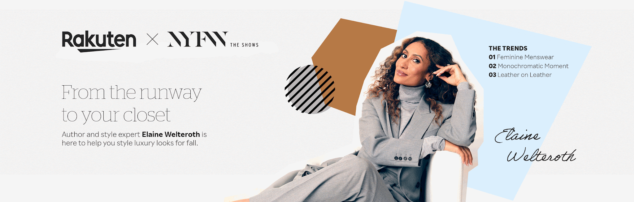 We partnered with former Teen Vogue editor-in-chief, author, Project Runway judge, and fashion influencer Elaine Welteroth to style three NYFW-inspired trends (plus bonus holiday looks!) that could be shopped from Rakuten merchants. The video series lived on Rakuten, Elaine, and NYFW’s channels, plus paid placements with YouTube, Conde Nast, Pinterest, and more.