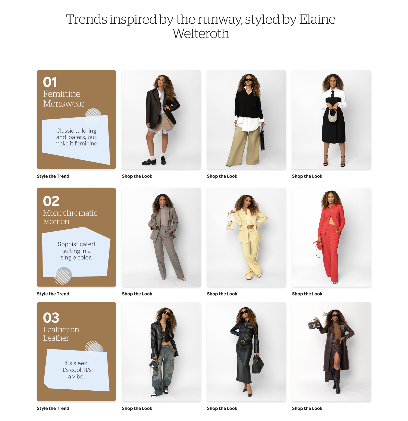 Each trend was featured on its own shoppable page, where members could recreate the look with 10% Cash Back from designer merchants.